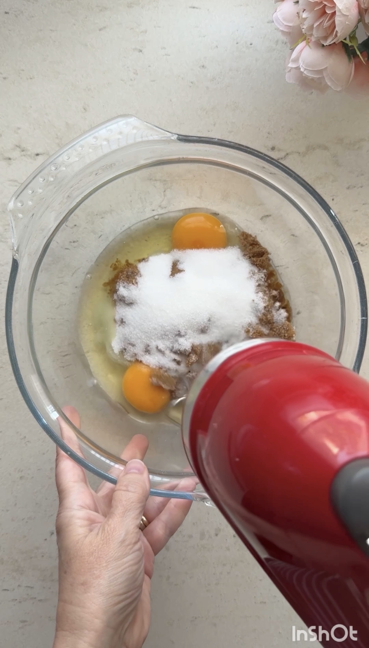 En otro bol, batiremos los azúcares con los huevos hasta que tripliquen el volumen.