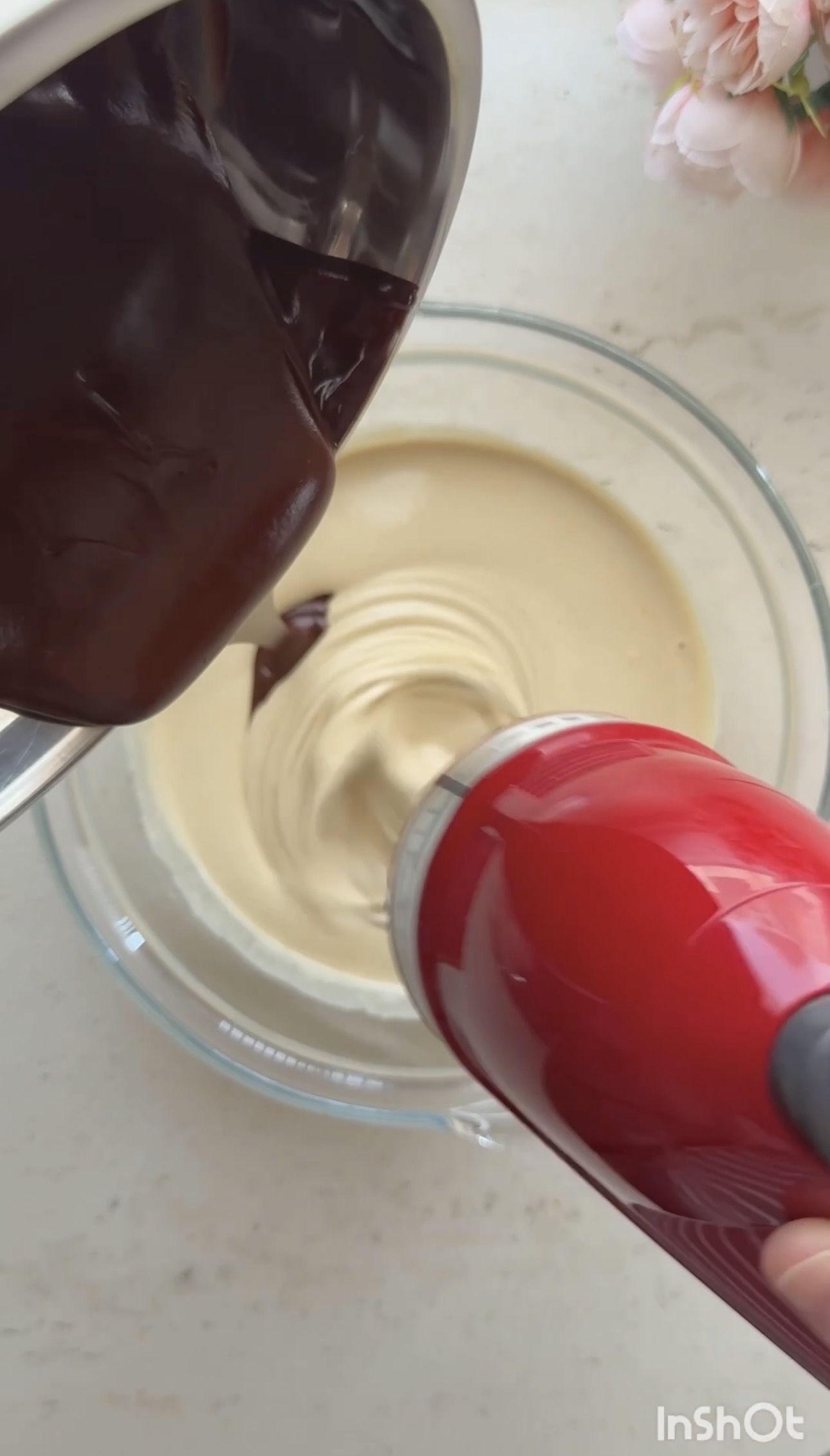 Por último, incorporaremos lentamente la mezcla de chocolate derretido con la mantequilla y batiremos hasta que esté bien integrada.